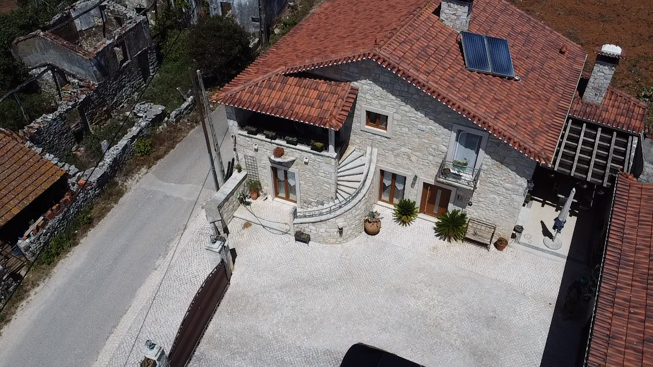 Acabamentos e Detalhes: Os acabamentos de alta qualidade complementam a estrutura original da casa. O telhado em telha tradicional foi restaurado, e as escadas externas em pedra mantêm a autenticidade do design original. O interior da moradia foi modernizado com bom gosto, respeitando o caráter histórico da propriedade.