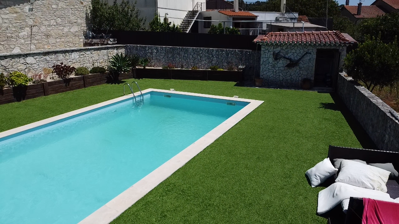 Espaço Exterior Aconchegante: A casa dispõe de um jardim espaçoso e bem cuidado, com uma piscina moderna que contrasta harmoniosamente com o ambiente rústico da propriedade. O espaço exterior é ideal para lazer e entretenimento, oferecendo um ambiente tranquilo e privado.